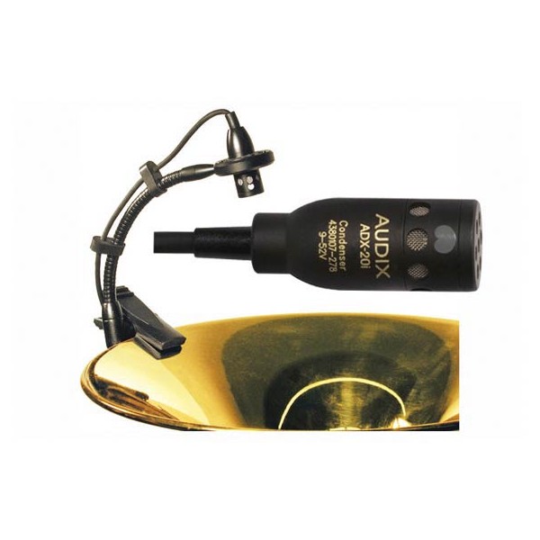 MICRÓFONO DE CONDENSADOR PARA VOZ O INSTRUMENTO Micrófono de condensador en miniatura con cuello de cisne y adaptador diseñado para instrumentos de metal de viento. Patrón polar: cardioide. Respuesta en frecuencia: 40Hz - 20KHz. Impedancia: 250Ohm Atenuación fuera de eje: > 20dB. SPL Max: 135 dB. Sensibilidad: 5,8 mV/Pascal. Adaptador APS-910 phantom incluido. Pinza en cuello de cisne, espuma y bolsa de transporte.