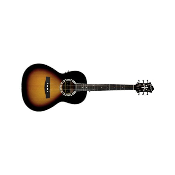 Seafarer - E - Parlor Electro/Acoustic - Tobacco Sunburst, Solid Sitka Spruce Top, Laminated Mahogany Back and Sides, Satin Mahogany Neck (Dove Tail), Resinator Fretboard and Bridge, Graph Tech Saddle and Nut, Fishman On-board Pre-amp Isys+, 18:1 Hagstrom Tuners