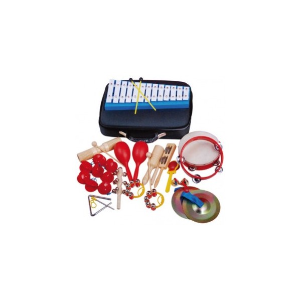 Compuesto por pandereta, crótalos, triángulo, maracas, castañuelas de plástico,