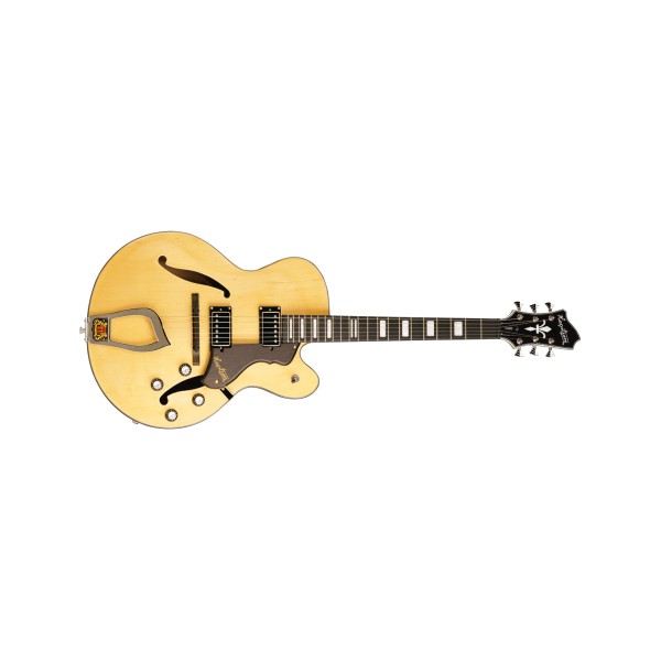 "HJ-500 - Natural - Contoured Maple Ply Hollow Body, Maple Set neck, Resinator Floating Bridge, Hagstrom Trapeeze, 2 x HJ-50 Alnico 5, 2 x Vol RC-Circuit, 2 x Tone, 3-Way Pick-up Toggle Switch, Scale Length 24.75"", 18:1 Hagstrom Tuners, H-Expander Truss Rod, Resinator Fretboard"