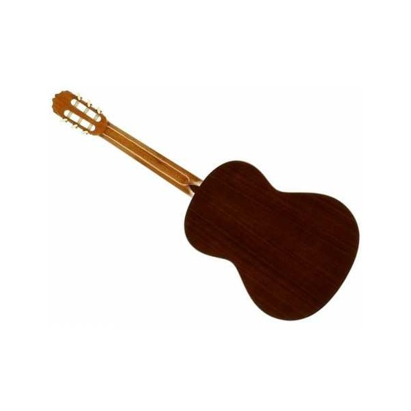 Guitarra clásica. Tapa maciza de cedro. Aros y fondo de caoba. Mástil de caoba. Diapasón de palosanto de la India. Cejilla de hueso. Clavijero plateado en niquel. Ribeteado de arce en la tapa. Acabado brillante.