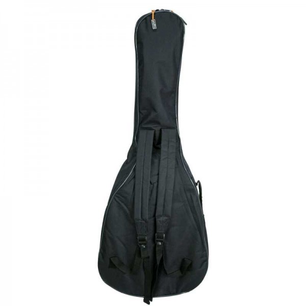 Funda para guitarra clásica acolchada de alta densidad de 3mm de poliuretano, equivalente a 6mm de poliuretano blando. Bolsillo frontal con cremallera. Correas ajustables tipo mochila. Asa de mano.