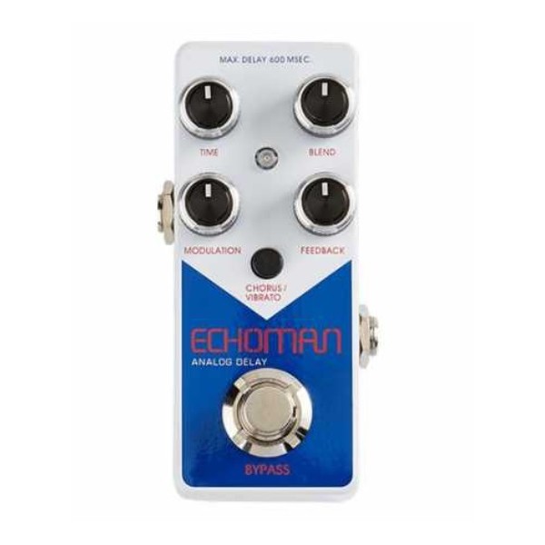 Echoman es un pedal de Delay analógico compacto y de calidad, diseñado por el gurú de los pedales Howard Davis. Su corazón electrónico está compuesto por nuestro chip MN3005, que también se ha convertido en el chip de Delay elegido por muchas otras marcas de pedales. Este pequeñín genera retardos de hasta 600ms y permite modulación de Chorus , trémolo, y autooscilación.